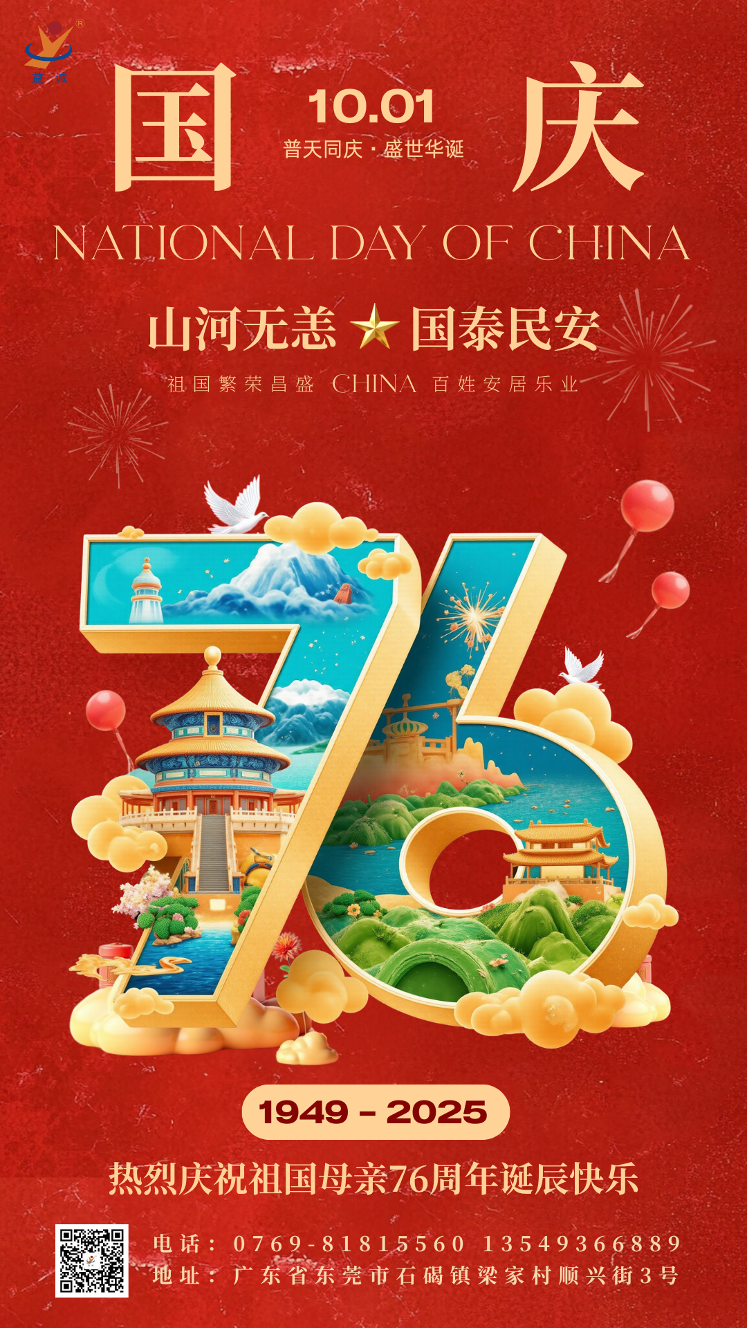 益誠(chéng)自動(dòng)化滿懷赤誠(chéng)與敬意,衷心祝愿:祖國(guó)母親,生日快樂(lè)!