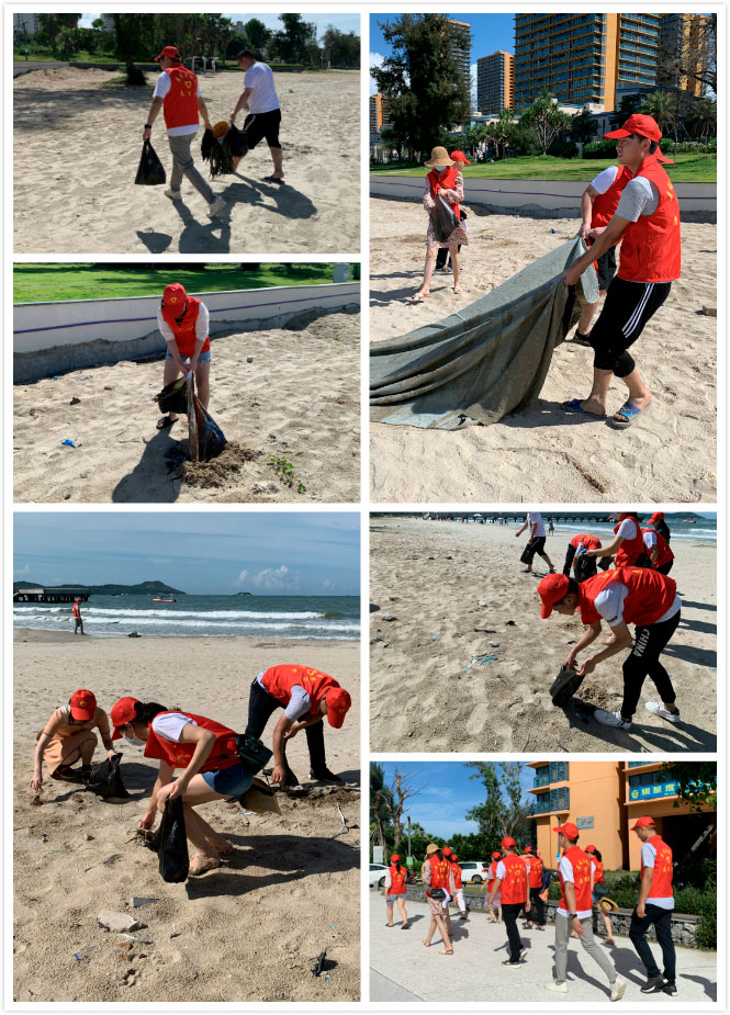 在兩天的團(tuán)建活動(dòng)中,義工隊(duì)組織了一次海灘清理垃圾行動(dòng),對(duì)雙月灣的棧道、海面和沙灘上的垃圾進(jìn)行了清理。義工隊(duì)成員們用自己的雙手、汗水,以實(shí)際行動(dòng)為自然環(huán)境出一份力,守護(hù)美麗的沙灘。
